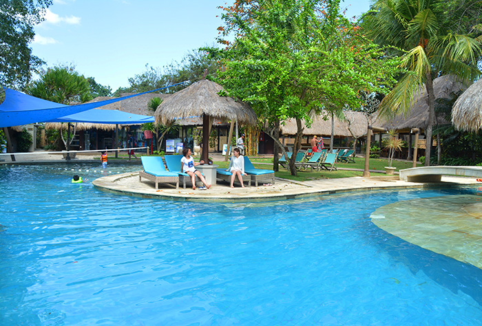 食後はしばしビーチクラブでまったり。ヤシの木が木陰を作る涼しげな●ガーデンや●バレーボールコートもある