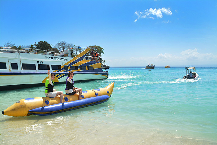 南国のバカンスらしくクルーズ船に乗ってのレンボンガン島までの小トリップ。綺麗な海も満喫できて、ビーチクラブや大きなポントゥーンなどの設備もバッチリ!さすが、レンボンガン島を知り尽くしたマリンアクティビティの王道「バリハイクルーズ」!