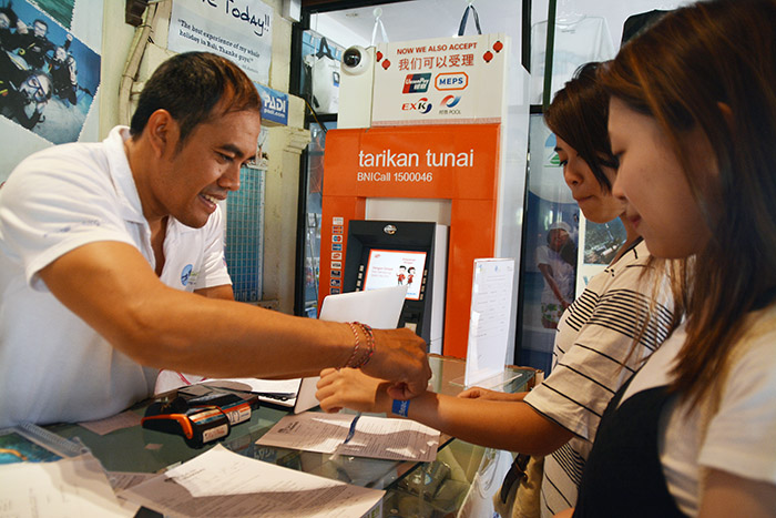 こちらのスタッフさん、よく見ると胸に「日本語」と書かれたバッジをしています。このバッジをしているスタッフは日本語が話せます。説明も日本語でしてくれるので、とってもわかりやすい!のが嬉しいですね〜。