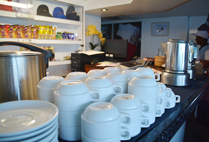 1階に戻りました。レンボンガン島まであと15分ほど。辺り一面大海原!