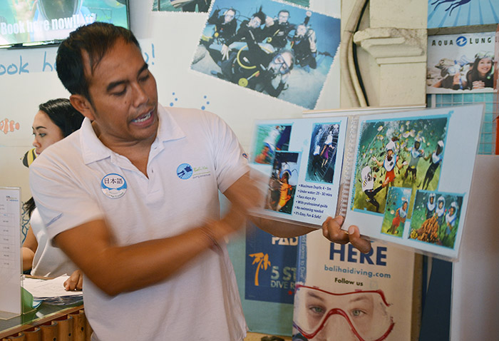 バリハイのスタッフさんからアクアノットなどアクティビティに関する説明があります。