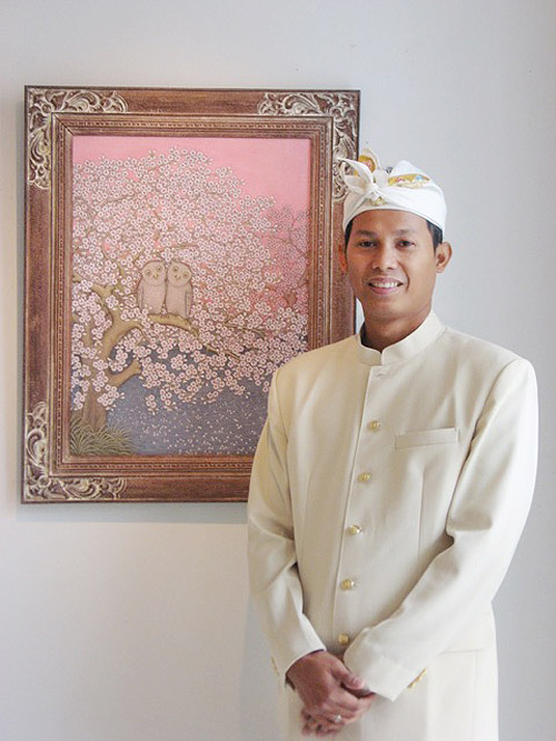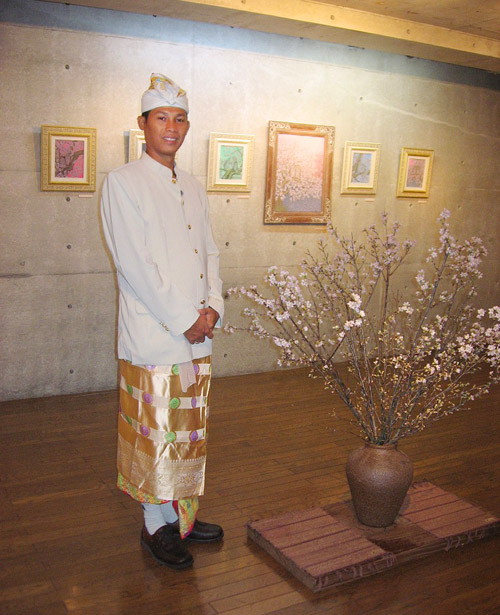 ↑バリ島の正装衣装を着たシーラ氏が、皆さまのご来場をお待ちしています。