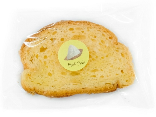 バリ島東部のクサンバという小さな村の塩田では、古き良き時代から天然塩が作られています。天日干し製法で作られる塩は100%ナチュラル食品で、海流の影響で海洋深層水が沸き上がってくるため、ミネラルがたいへん豊富です。ほんのりキャラメルの香りがするラスクに、まろやかな塩の結晶がアクセントとなっています。絶妙なしょっぱ甘さをお楽しみ下さい。