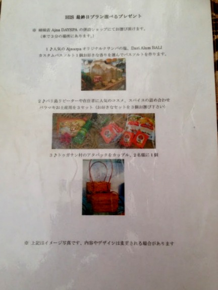 最終日プランは、帰国フライトによってホテルのお迎え時間が違います。荷物を全てまとめてホテルをチェックアウトして、最終日プランへ参加です。(ホテルには戻りません。スパから直接空港へ送迎となります。)