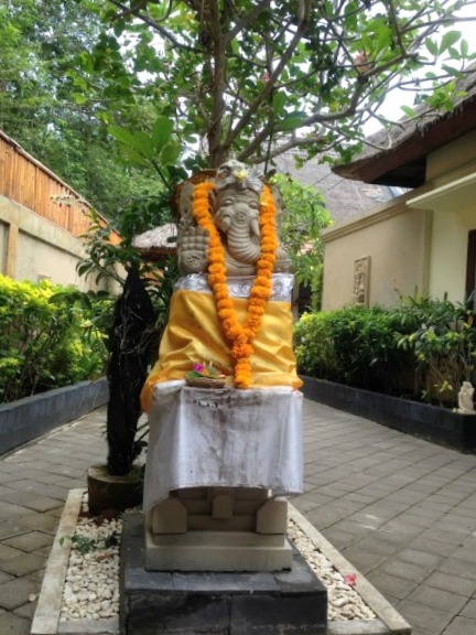 ホテルにはアジュナ・ヴィラのスタッフがお迎えに伺います。アジュナ・ヴィラの入り口にはガネ-シャがお出迎え。