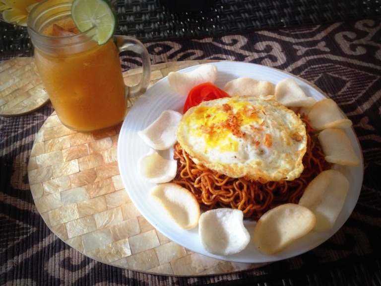 5種類から選べるディナー(食後にフルーツとホットティー付)。定番のミ-ゴレン(太麵やきそば・辛くないです)