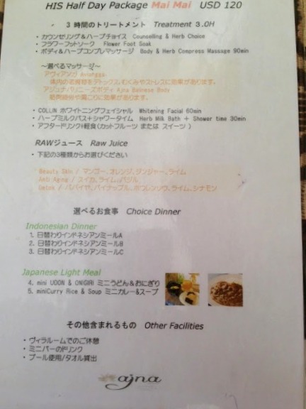 アジュナ・ヴィラ&スパ最終日プラン 料金:大人(12-80歳)USD 129