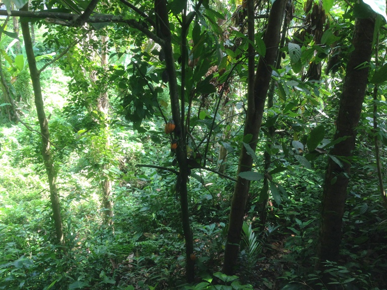 インストラクターも一緒に階段を登ってくれて、カカオの木を教えてくれました。インドネシアはカカオの産地なんです。