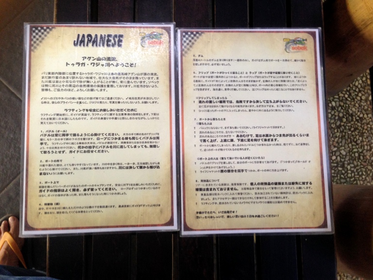 しばし放置されたので(汗)…注意事項のイラスト見たり・この川下るのかと眺めてました。(笑)