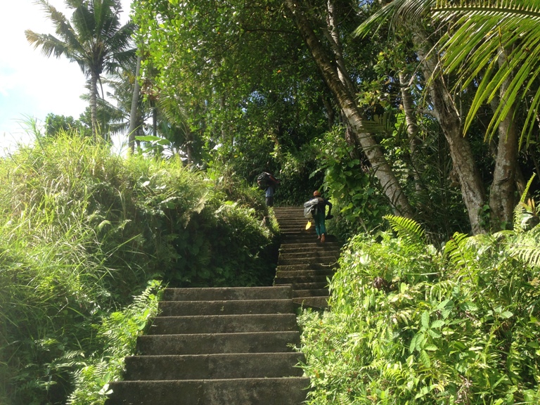 この坂を下ると受付があります。写真は周囲のジャングルが写ってませんが、いい感じで森に囲まれ空気が美味しいです。