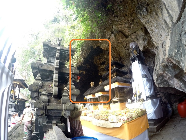 ②海の寺院の総本山・コウモリが生息している「ゴアラワ寺院」→