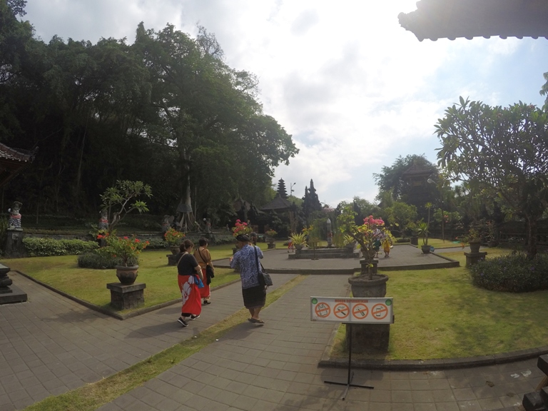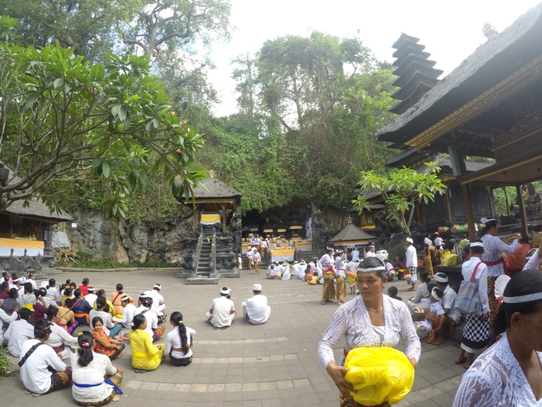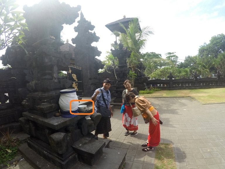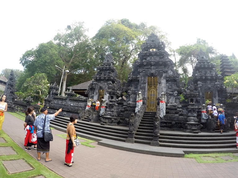 ゴア=洞窟、ラワ=コウモリ、の名の通り寺院の奥にある洞窟に無数のコウモリが生息している寺院。寺院に入る前にガイド、クスマさんが聖水でお清めしてくれました。