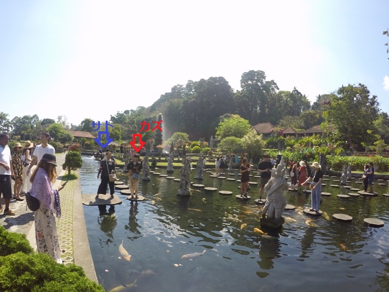 池に浮かんでいる丸い石を歩く人が多くなかなか進みません…(汗)