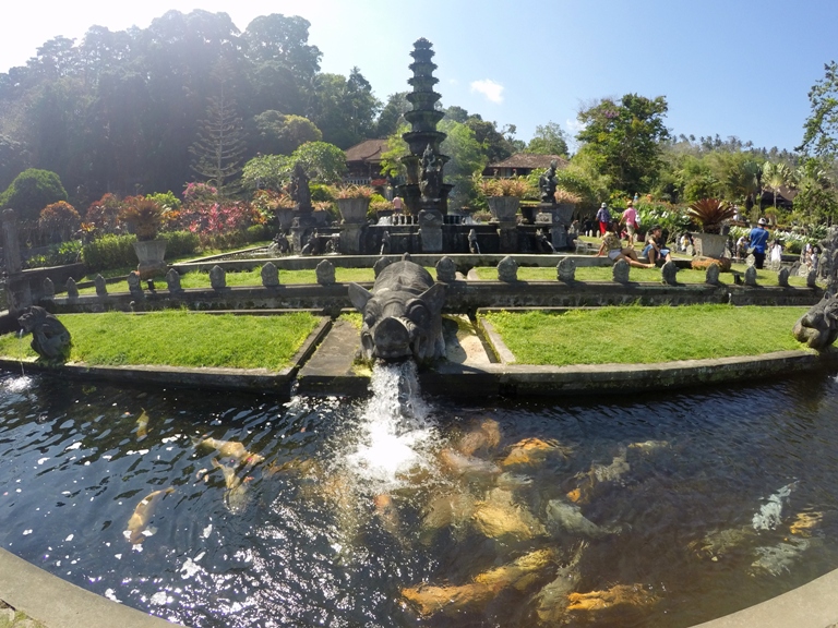 ティルタガンガは、綺麗な庭園を1周することができます。この豚さんジブリっぽくないですか?池に泳いでる鯉はどれも大きいので写真の鯉は巨大っぽく見えないですが、かなりデカイです。例えるなら…お相撲さんの二の腕(笑)