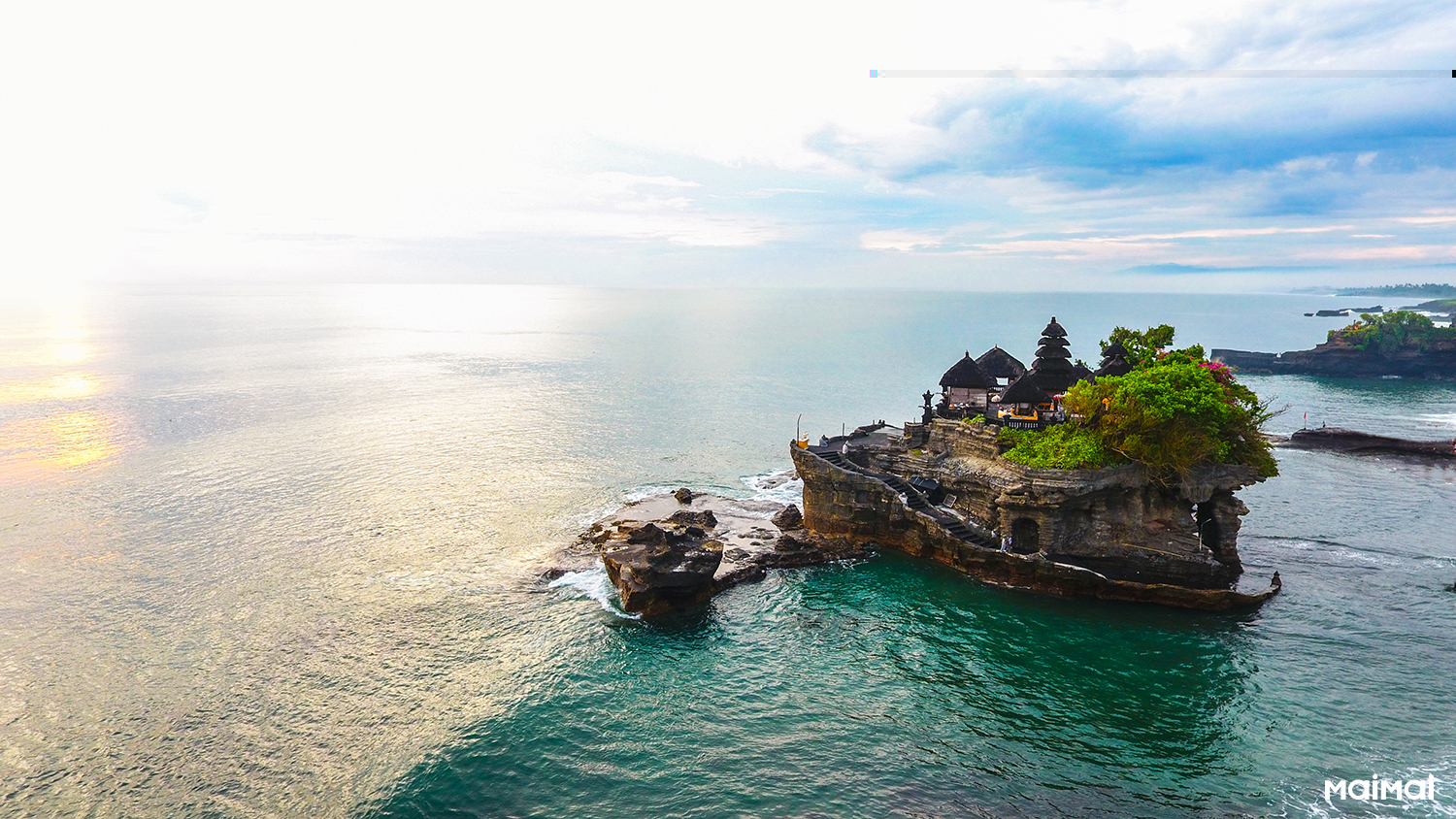 沈む太陽、黄金に輝く海、夕日に映える寺院のシルエットで有名な、タナロット寺院は、 海の神が祀られているバリ6大寺院の一つ。 満潮時は、海に浮かぶ孤島の寺院、 干潮時は潮が引き、寺院入口まで行くことが出来るけれど 神聖で特別な場所へは近づくのがちょっと怖い。 ゴツゴツとした岩が見え隠れする寺院の横でサーフィンをするローカルがいてびっくり。