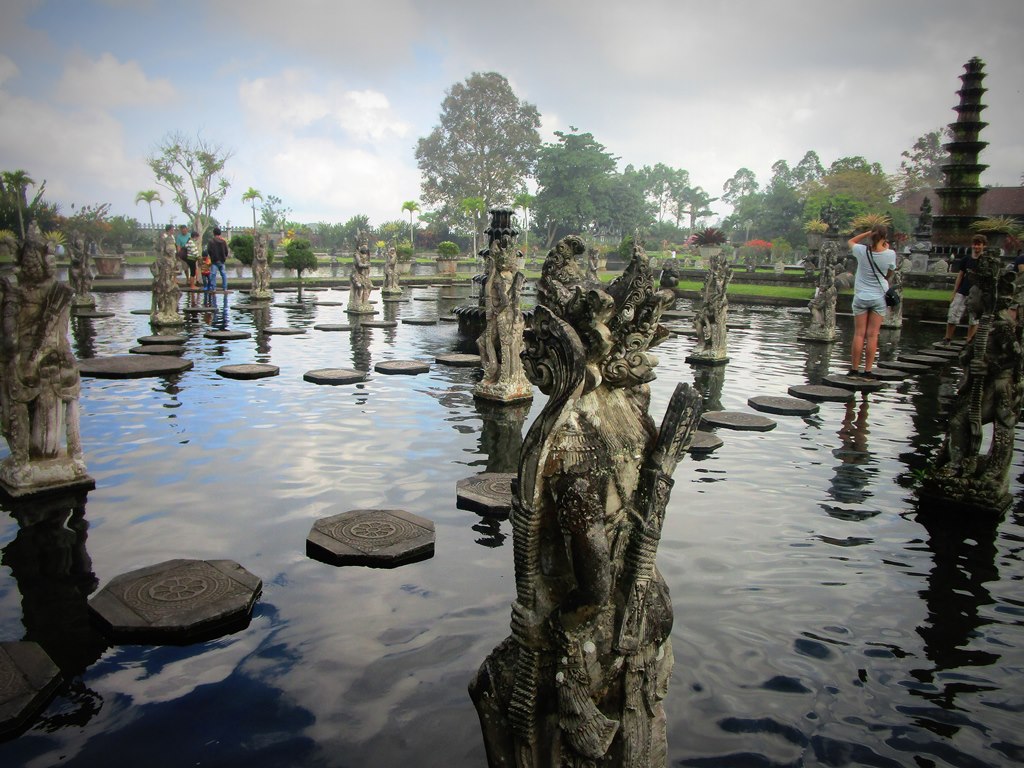 ティルタガンガとはガンジスの水、を意味する言葉で、アンラプラの王様が作った水の離宮。今から約70年前に建てられたもので王族が週末に利用していたと言われています。バリらしい石像、大きな水面が広がりとても涼し気。その中には飛び石が置かれていて皆一歩づつ池の中を進んでいきます。一番奥では地元の人々が多く水遊びをしている姿が見られここはプールになっているのかな。 バリ島東部への旅の道中、一休みがてらに立ち寄ってみました。