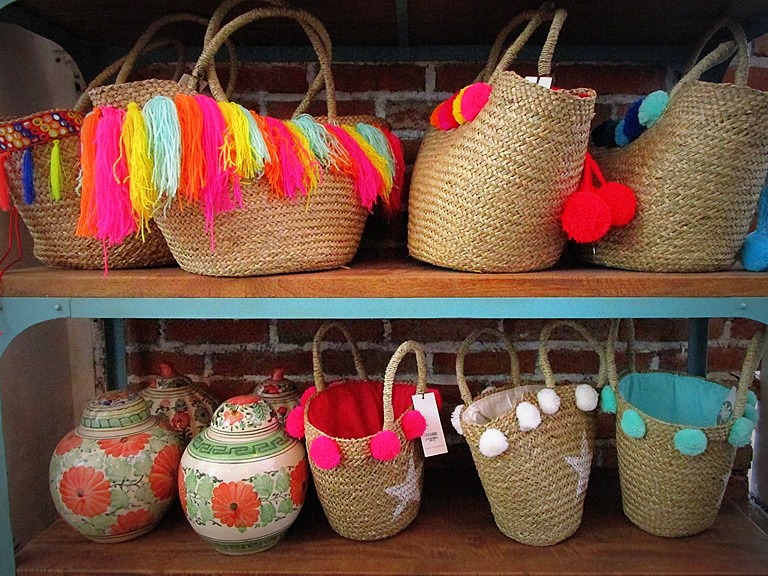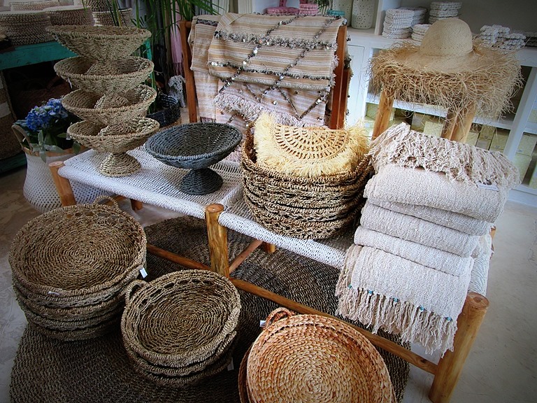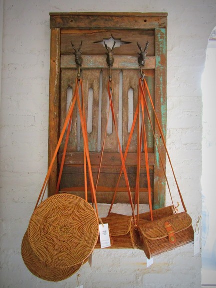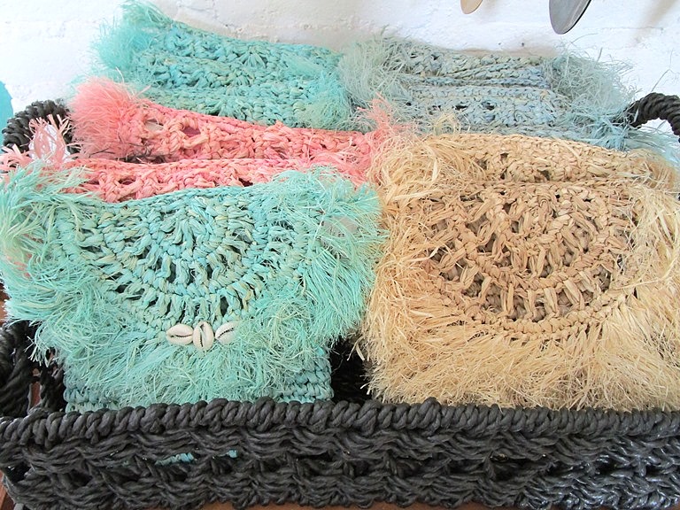 ターコイズブルーも好きです。手前の藁帽子 Rp 100,000、ターコイズが縫い込まれている!