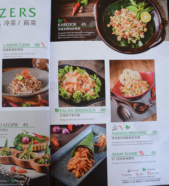 料理の名前はインドネシア語で記載されていますが、メニューはほとんど写真付きで英語で簡単に料理の説明がされているのですごくわかりやすいです。