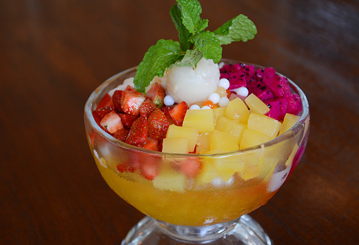「エス ニルワナ トラディショナル」Rp.42,000。かき氷の上に南国フルーツやナタデココなどがたっぷり乗ったひんやりデザートで口の中もさっぱり!見た目もカラフルで可愛いですよね。