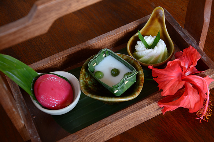 最後は「アネカ ジャジャン パサール」Rp.45,000。市場で売られているお菓子という名前ですが、こちらでちゃんと手作りされています。笑。米粉やヤシ砂糖、ココナッツをベースにしたバリ伝統のお菓子は毎日種類が変わるそうです。