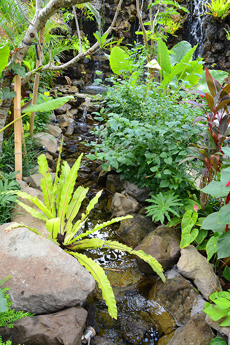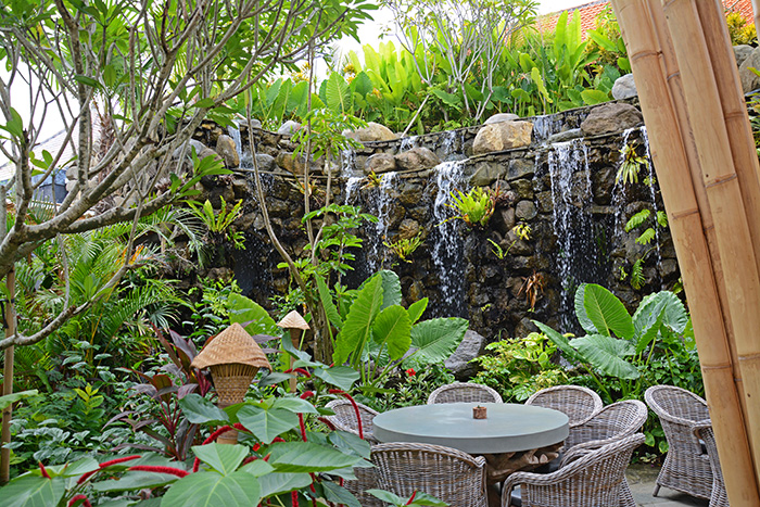 滝の水はこれまた人工の小川に流れ・・・・水は涼の演出にもぴったり、そしてその音は癒しにもなりますよね〜? ちなみにレストランの名前であるWANAとはバリ語で「森」という意味なんだそうです。