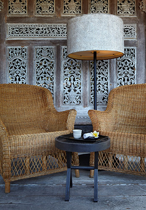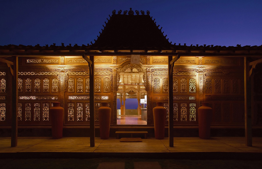 スパのレセプションは、ジョグロスタイルというジャワ島の建築を解体し、