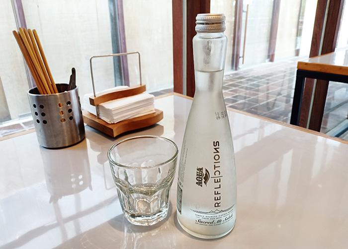 飲み物は実はなんでもよくてミネラルウォーターを頼んだのですが、お値段がRp.20,000と飲料水にしてはちょっとお高め。でも出てきたらおしゃれなので許します。笑