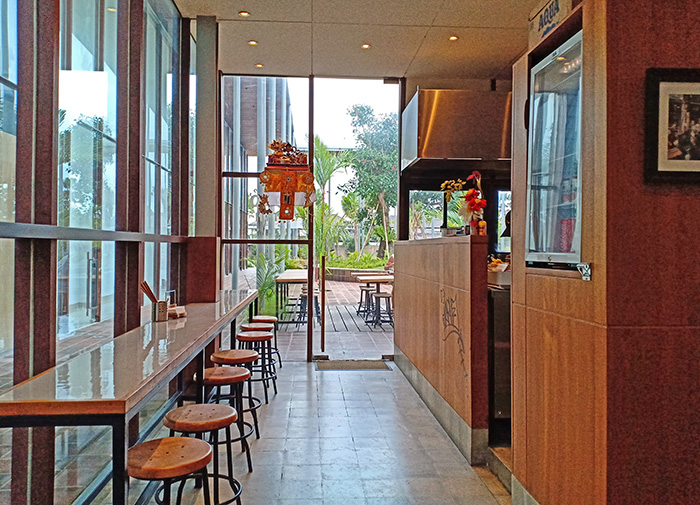 エアコンがよく効いた店内はこぢんまりとしていて、テーブル席が6つとカウンター席、あと、屋外にもテーブル席が用意されています。
