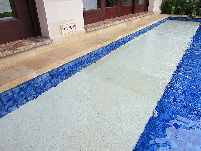 プールの深さは1.45mですが、20cmくらい?の浅い部分(↓白い部分)があるのですが、ここでのんびりできる!こういう造りが嬉しい。
