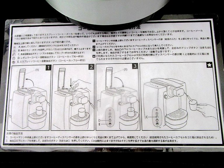 難しいエスプレッソコーヒーマシーンの使い方の日本語があったのには感動。