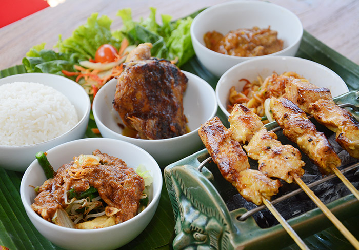 結構なボリュームなので、2人でシェアして食べましょう。内容は、鶏もも肉のハニーレモンソースグリル、シーフードフライドヌードル、ビーフルンダン、鶏肉のサテ、ガドガドですが、こちらも一つ一つのおかずが唸る美味しさ。2人で食べればかなりお得です!