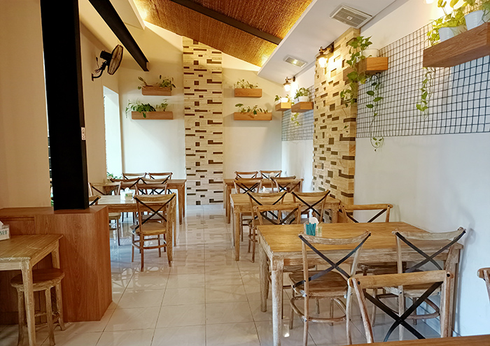 店内はこんな感じ。オープンエアでナチュラルテイストの明るい造りです。ランプやファンも趣味よし!