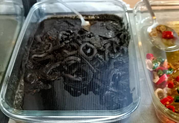 たくさんのおかずの中でもNさんオススメのイカの墨煮。