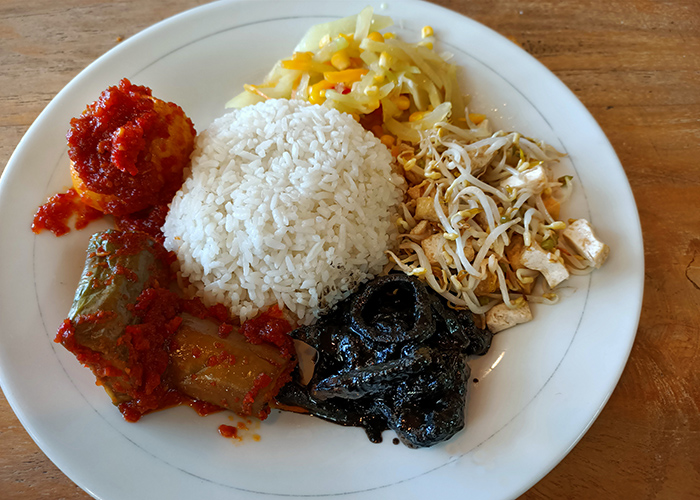 ひと昔前は「ナシチャンプル屋さん」というと、ローカル色の強いベタなイメージでしたが、今では、特にスミニャックエリアなどにはレストランといってもいいような外国人観光客も多く利用するおしゃれなナシチャンプルやさんも増えています。