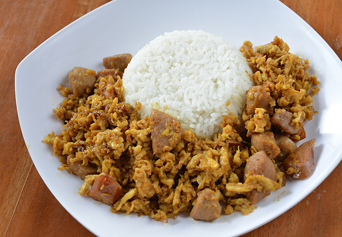 ↓「ナシ ギラ アバン ガントゥン アップノーマル」Rp.28,500。これは何かと申しますとソーセージとバッソの肉類と卵を炒め混ぜたものをご飯の上に乗せたぶっかけ飯。イメージ的には料理の苦手な一人暮らしの男性が作った「腹が膨れればなんでもいいぜ〜!」みたいな感じ。笑 。