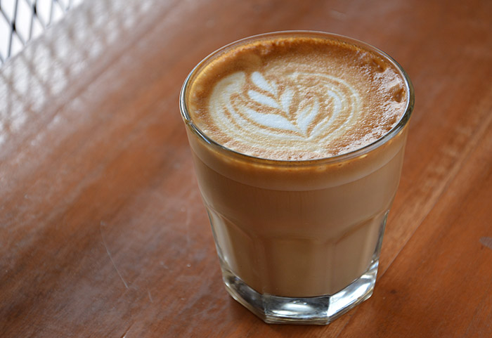 ↓ガヨマウンテンのアラビカ豆を使った「カフェラテ」Rp.19,500。今度はブラックで飲んでみたいです。