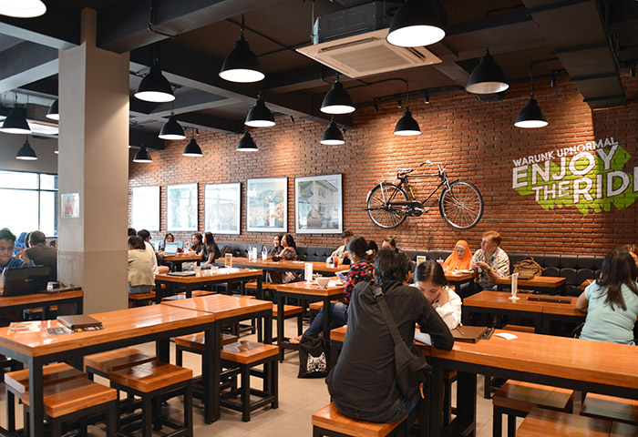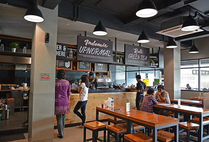 ↓エアコンの効いた店内は広く、今風のインダストリアルちっくなインテリアデザイン。どこのワルンアップノーマルも必ず同じインテリアなんだそうです。