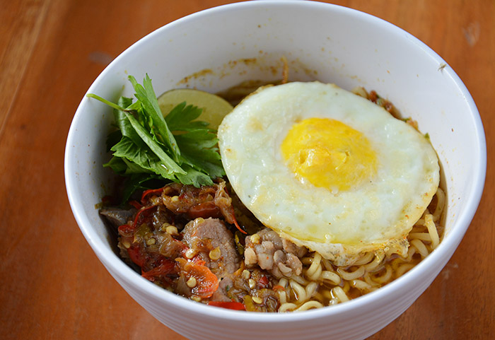 ワルンアップノーマルは、とにかく料理が安い!ジャンクなメニューのほとんどは1万〜2万ルピア代なんです。そして面白いのがインドミーメニュー!インドネシアの大手インスタント麺会社の「Indomie(インドミー)」とコラボをしていて、インドミーを使ってアレンジしたメニューがいっぱいあります!お店の名前の由来もそこからで、普通に食べるインスタントよりアップノーマル(普通よりちょっと上)ってことらしいです(笑)。