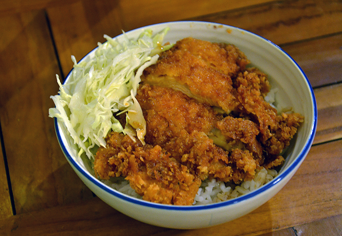 チキンカツ照り焼き丼 Rp.43,000。アツアツ揚げたてのチキンカツに照り焼きのタレが染み込んでうまうま♪写真ボケボケですみません…