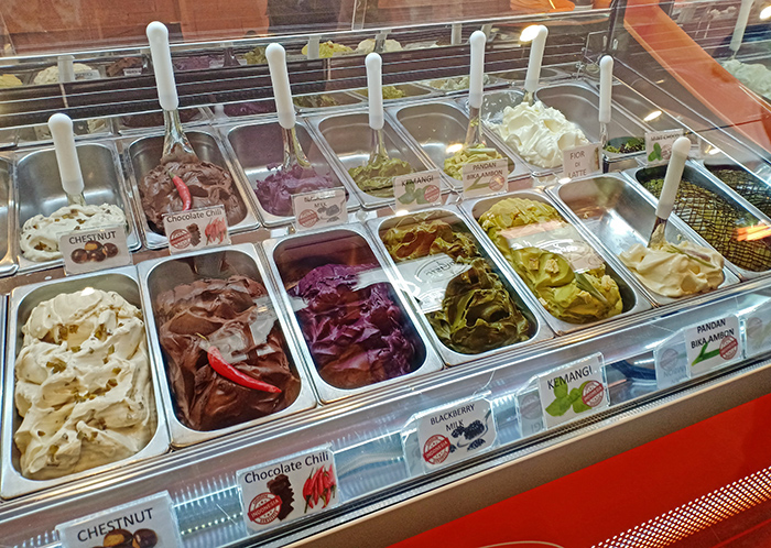 スミニャックのムルタナディ通りにあるジェラートのお店「グスト」はいつも多くのゲストで賑わう人気店。
