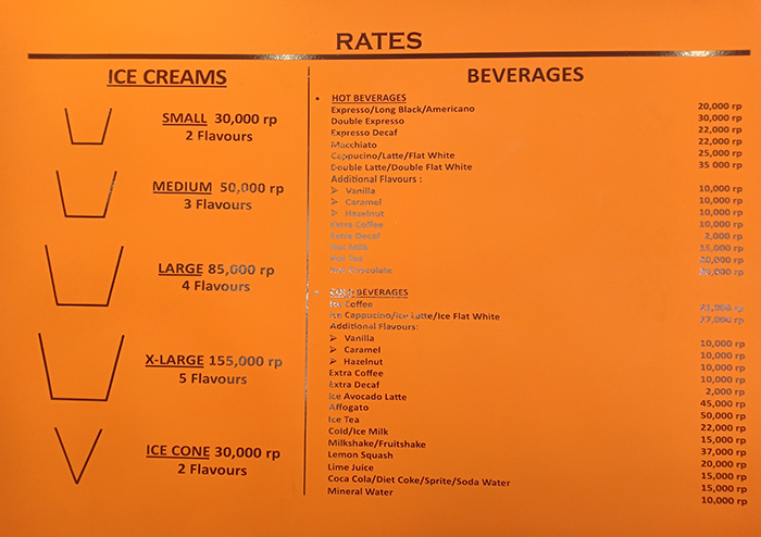 ジェラートはスモールサイズRp.30,000で2スクープのカップをチョイス。
