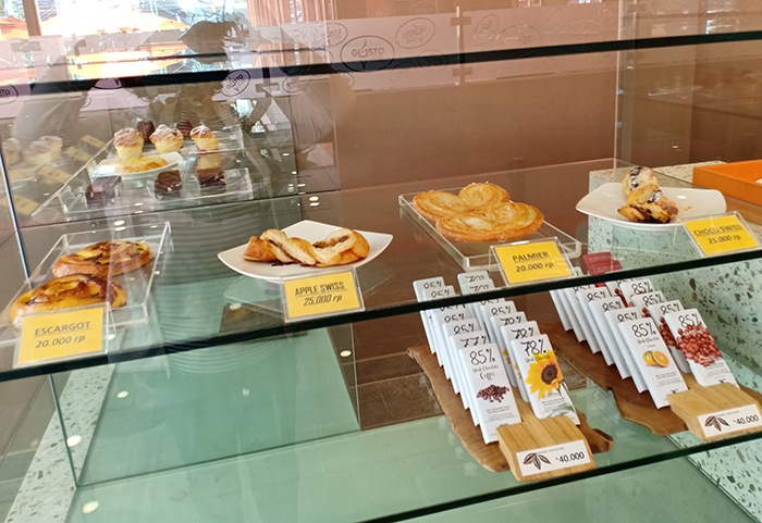 キャッシャーの横にはパンなどのショーケースもありました。テイクアウトでも中で食べてもOK。