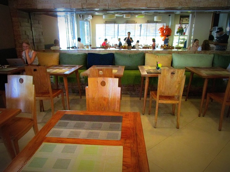 良くいくランチ処は、会社からも近くて野菜をもりもり取り入れることが出来る健康カフェ、ディジョン、で在住外国人も多く昼時は混み合います。場所はシンパンシウル、空港からサヌール方面へ向かい、免税店Tギャレリア前の地下道へは行かずにサンセットロードへ入る手前。