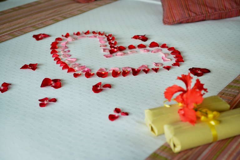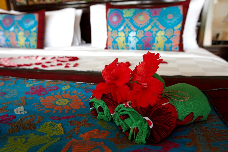ホテルのトレードマークは真っ赤なハイビスカス。あちらこちらに飾られる。