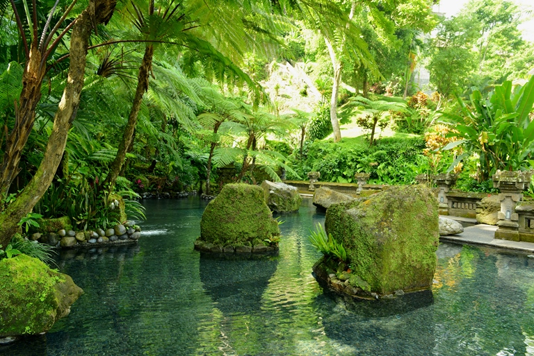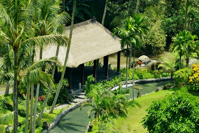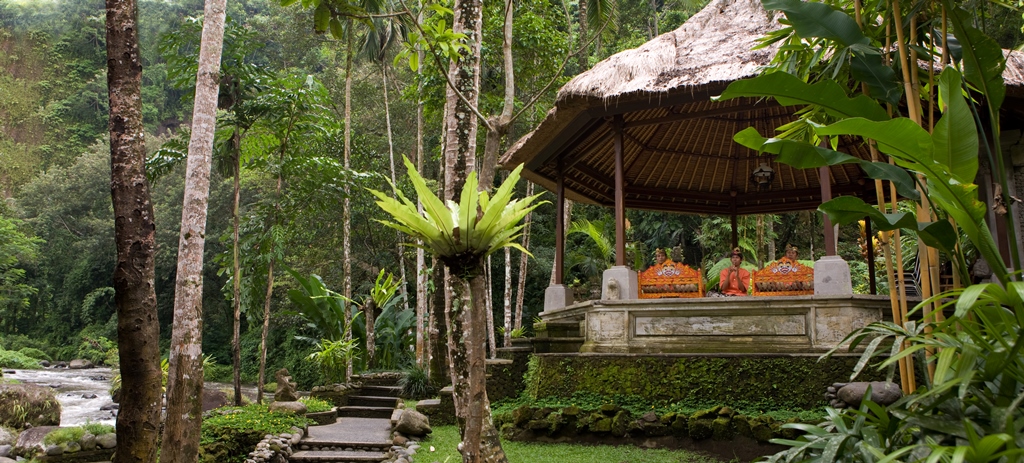 ホテル中にはたくさんの神様の場所や湧き水があり日々この土地への祈りを欠かしません。自然に神々が宿ると信じられているバリらしい光景。