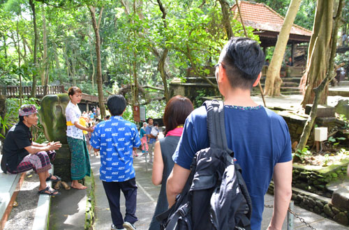 最初はパダンテガル村にあるモンキーフォレストです。モンキーフォレストの広さは約10ヘクタール。敷地内には「ダレムアグン寺院」「ベジ寺院」「プラジャパティ寺院」の3つのお寺があります。神木であるガジュマルなどの大きな樹木がたくさんあり、木陰を作るため、ちょっとひんやりとした空気に清々しさを感じます。