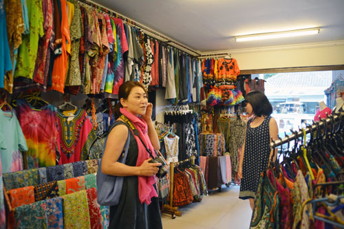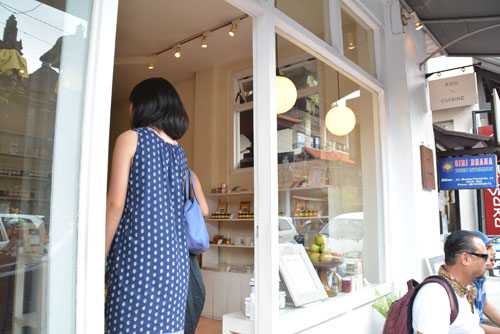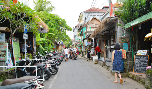 コーヒータイムでくつろいだ後は、ゴータマ通りに入ります。デウィシタ通りとラヤウブド通りをつなぐ、最近注目の小道。 おもちゃ箱のようなごちゃごちゃ感が魅力的な路地です。