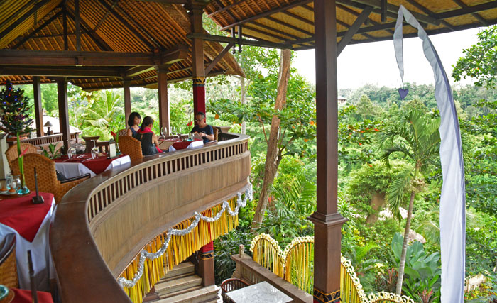そのままロビー横にあるレストランに案内されます。ピタマハはチャンプアン渓谷沿いにあり、レストランからは渓谷の深い緑を一望できます!景色に癒される〜!