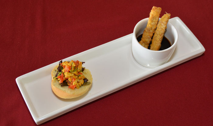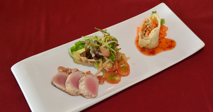 ルンピア ゴレンとツナをレアに焼いたものにサンバルマタをつけて頂きます。