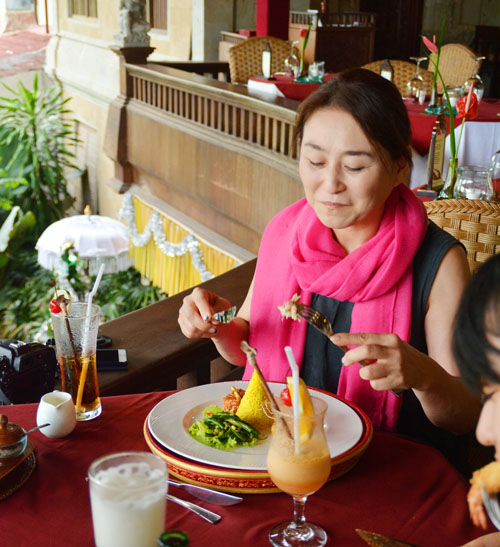 ウブド散策でよく歩いた後は、お待ちかねのアーリーディナー♪